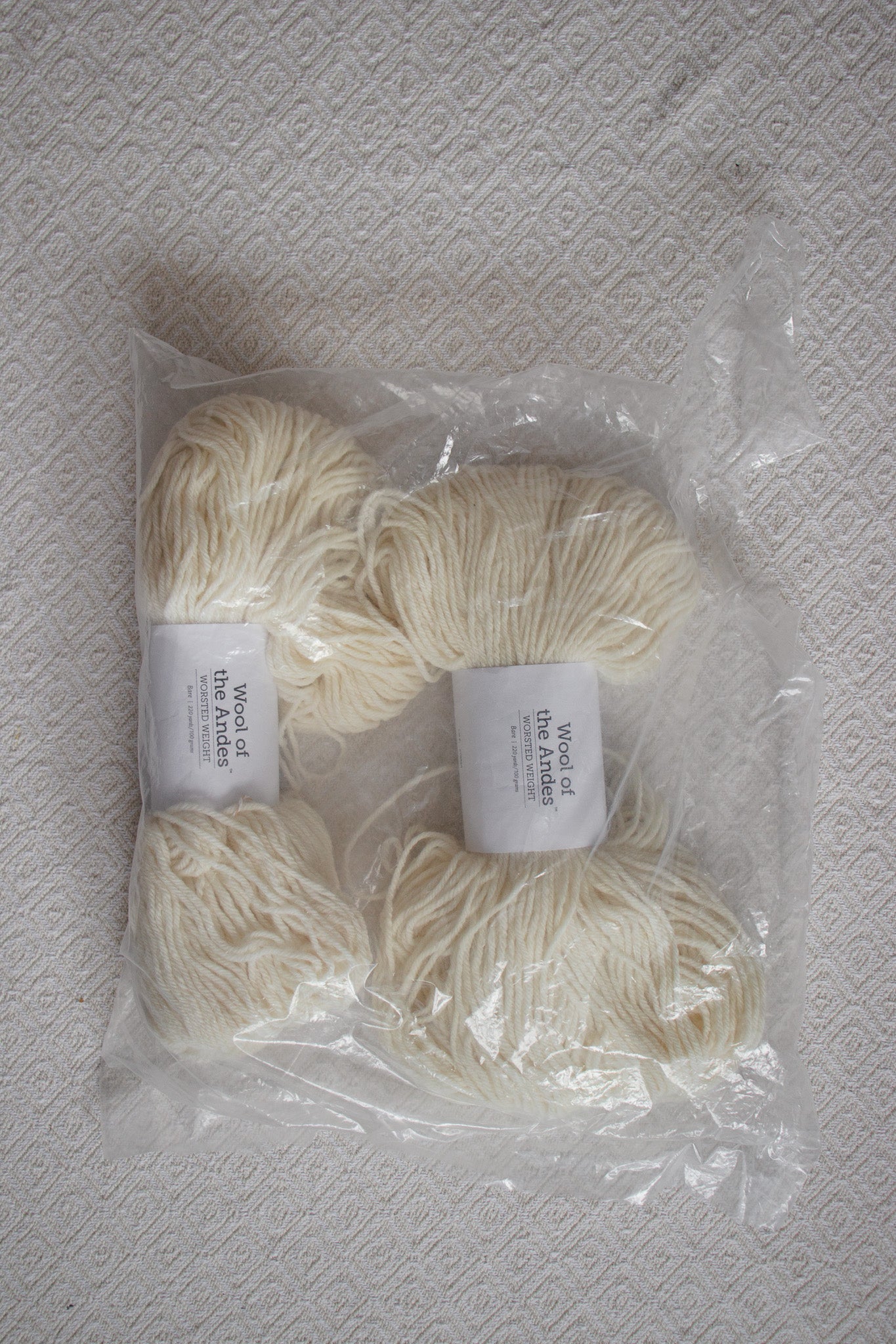 2 hanks of Knit Picks Wool of the Andes Worsted Weight, undyed (bare) wool