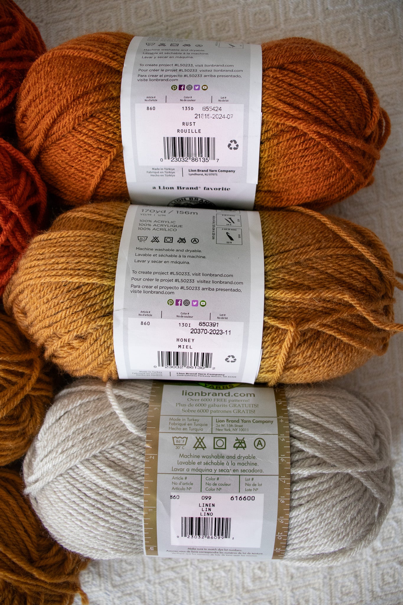 11 skeins of Lion Brand Wool-Ease yarn and Vanna's Choice yarn in assorted colours.